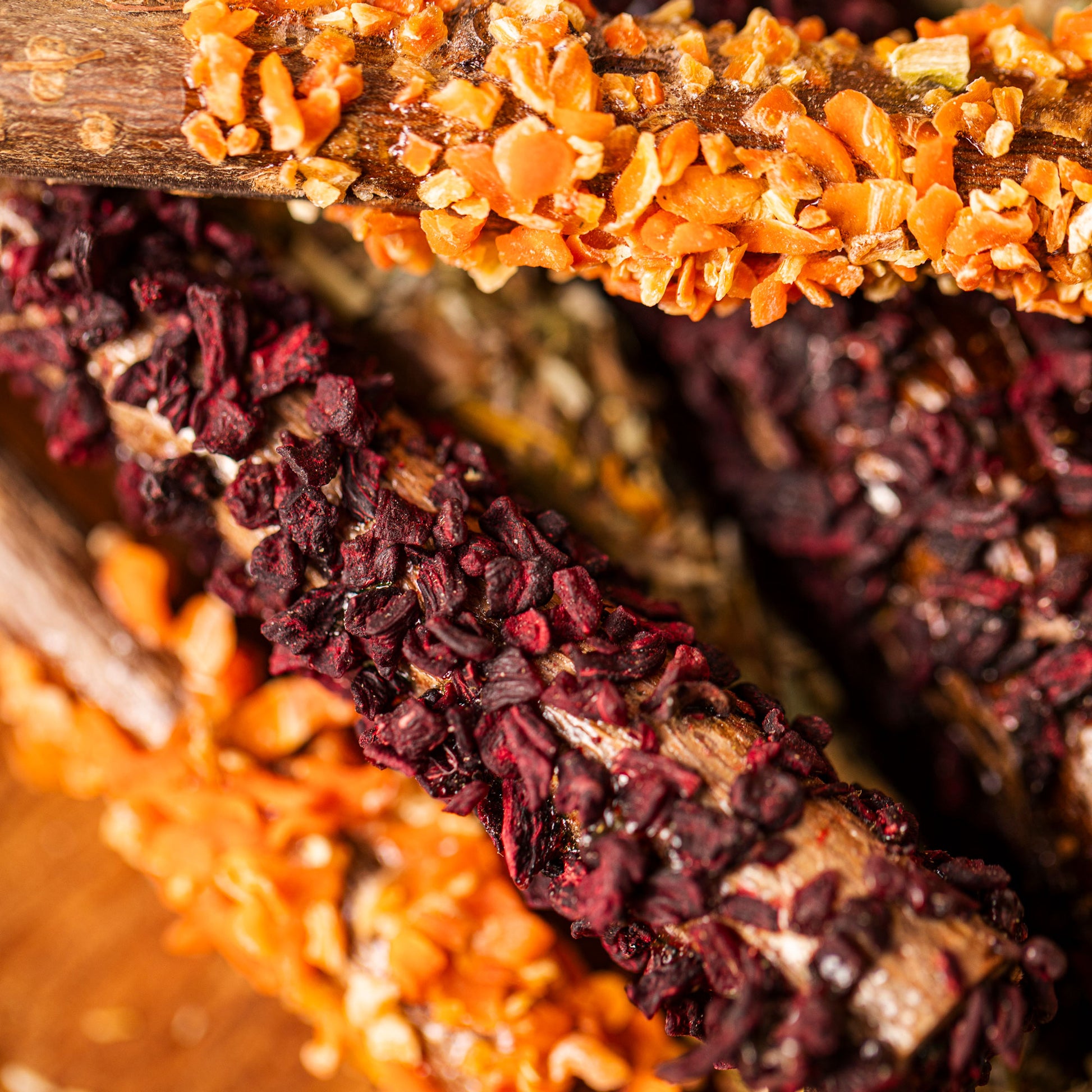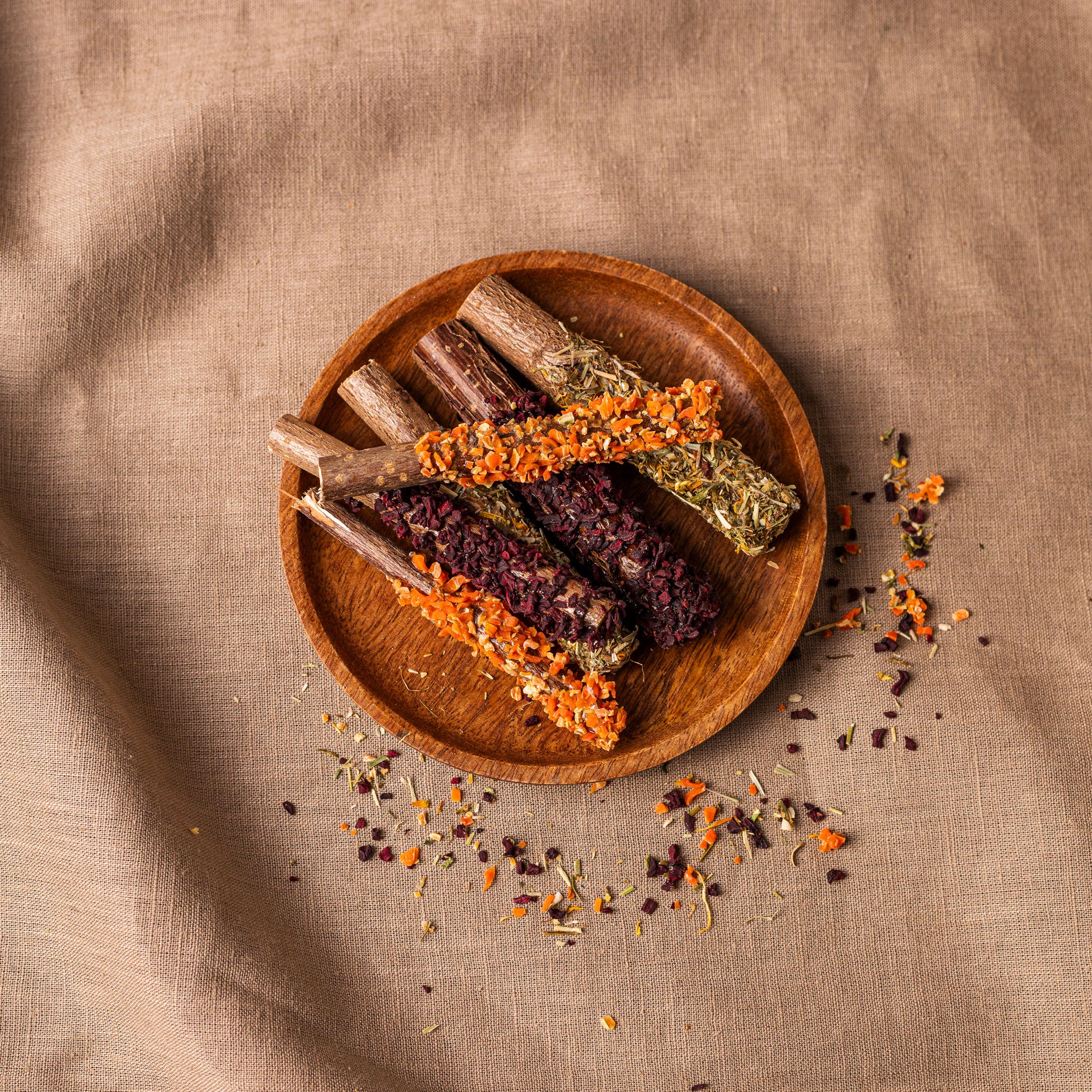 Słodzone opcje nie nadają się dla gryzoni, dlatego te są oparte wyłącznie na warzywach i ziołach.